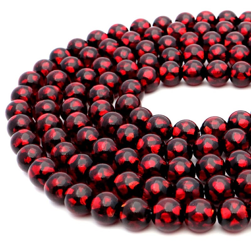 ホタルガラス レッド ビーズ 一連 10mm 40玉 赤色 とんぼ玉 パーツ 沖縄 お土産