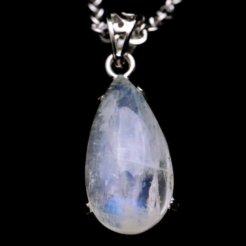 ムーンストーンは長石(フェルドスパー)という鉱物グループの一種。長石グループの石には、ラブラドライト、サンストーン、アマゾナイトなどがあり、同じ仲間とは思えないほど多種多様です。ムーンストーンはオーソクレース(正長石)を主とし、アルバイト(曹長石)を含むものをいい、この二種類の長石の層が重なり合って、光の内部反射と干渉が起こり、「シラー(シーン)」と呼ばれる幻想的な光の効果を見ることができます。