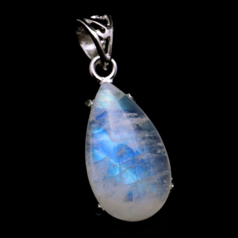 ムーンストーンは長石(フェルドスパー)という鉱物グループの一種。長石グループの石には、ラブラドライト、サンストーン、アマゾナイトなどがあり、同じ仲間とは思えないほど多種多様です。ムーンストーンはオーソクレース(正長石)を主とし、アルバイト(曹長石)を含むものをいい、この二種類の長石の層が重なり合って、光の内部反射と干渉が起こり、「シラー(シーン)」と呼ばれる幻想的な光の効果を見ることができます。