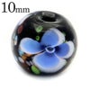 とんぼ玉 粒売り 1粒 10mm ビーズ 花柄 ラウンド バラ売り ガラスビーズ 蜻蛉玉 藍色 インディゴブルー