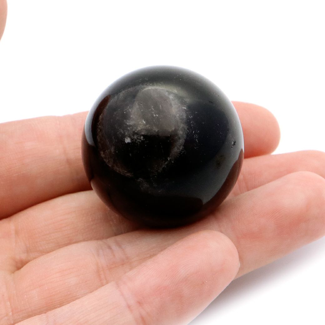 モリオン 丸玉 直径 約33.3mm 黒水晶 山東省産 1点もの 台座付き 天然石 パワーストーン スフィア Morion