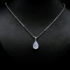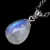 ムーンストーンは長石(フェルドスパー)という鉱物グループの一種。長石グループの石には、ラブラドライト、サンストーン、アマゾナイトなどがあり、同じ仲間とは思えないほど多種多様です。ムーンストーンはオーソクレース(正長石)を主とし、アルバイト(曹長石)を含むものをいい、この二種類の長石の層が重なり合って、光の内部反射と干渉が起こり、「シラー(シーン)」と呼ばれる幻想的な光の効果を見ることができます。