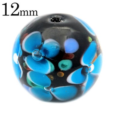 とんぼ玉 粒売り 1粒 12mm ビーズ 花柄 ラウンド バラ売り ガラスビーズ 蜻蛉玉 水色 ライトブルーのレビューを書く