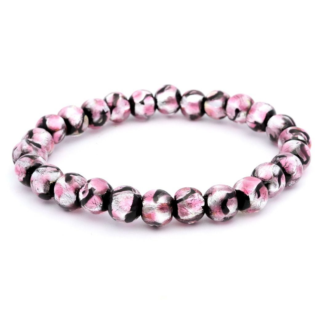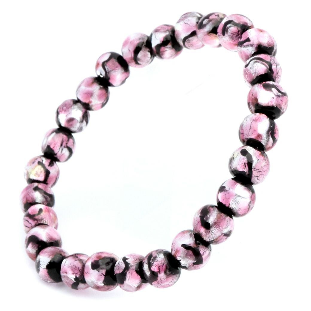 ホタルガラス ブレスレット ピンク 桃色 8mm とんぼ玉 沖縄 お土産 アクセサリー 琉球