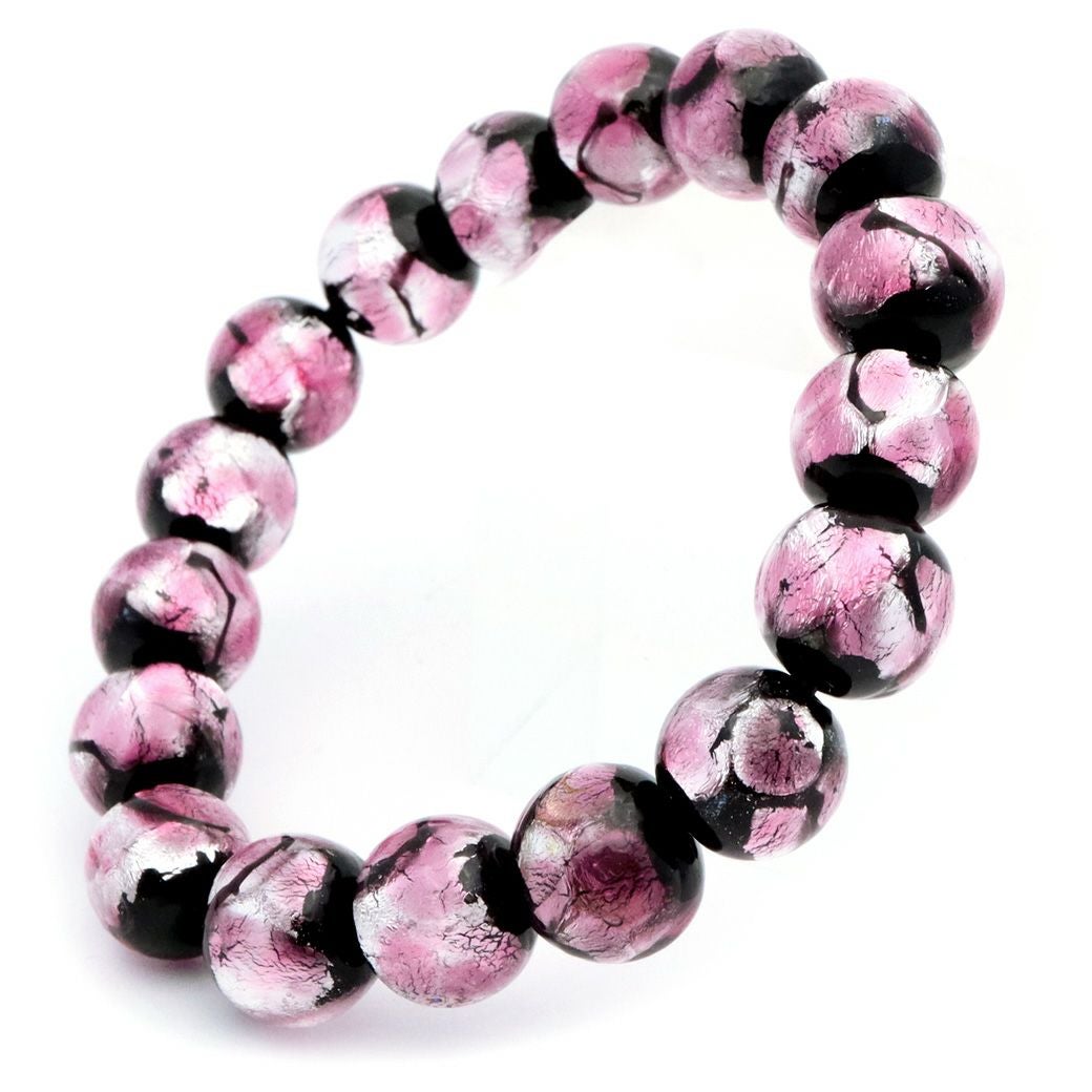 ホタルガラス ブレスレット ピンク 桃色 10mm とんぼ玉 沖縄 お土産 アクセサリー 琉球