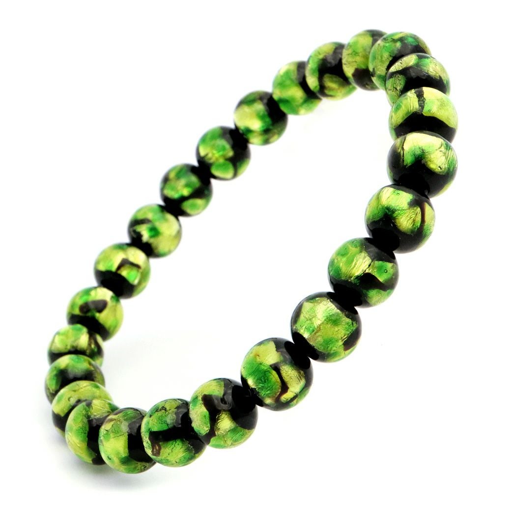 ホタルガラス ブレスレット ライトグリーン 緑色 8mm とんぼ玉 沖縄 お土産 アクセサリー 琉球