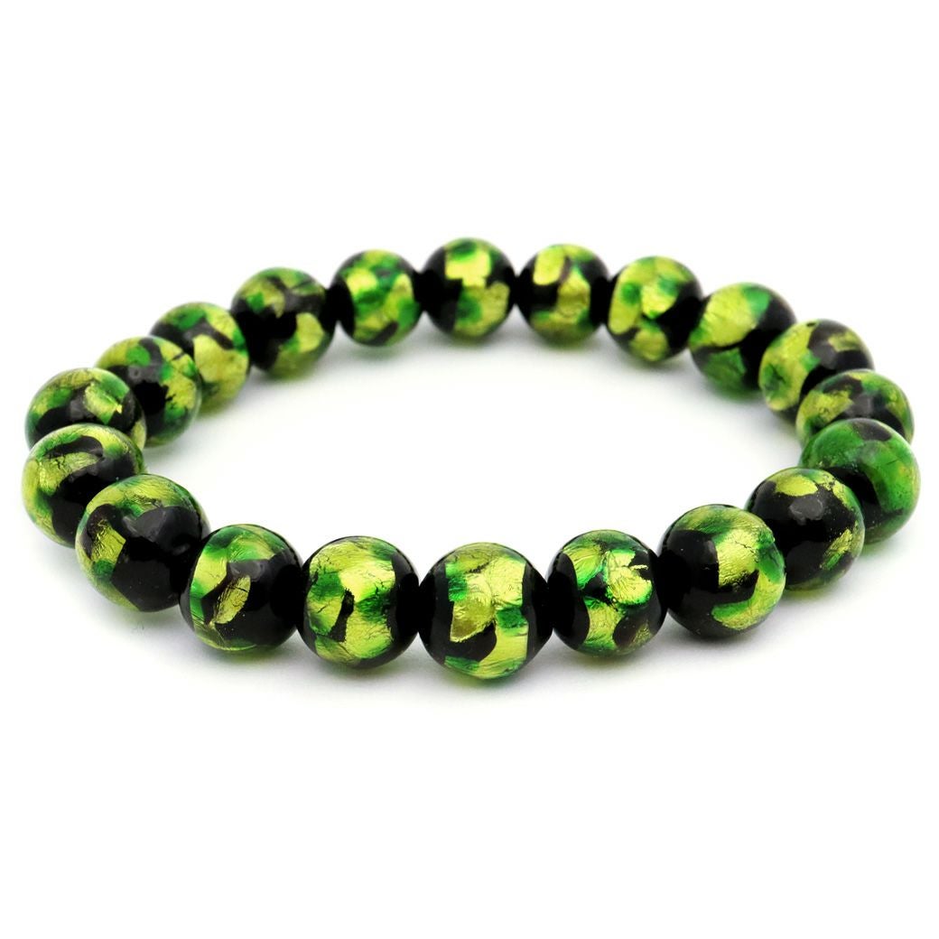 ホタルガラス ブレスレット ライトグリーン 緑色 10mm とんぼ玉 沖縄 お土産 アクセサリー 琉球