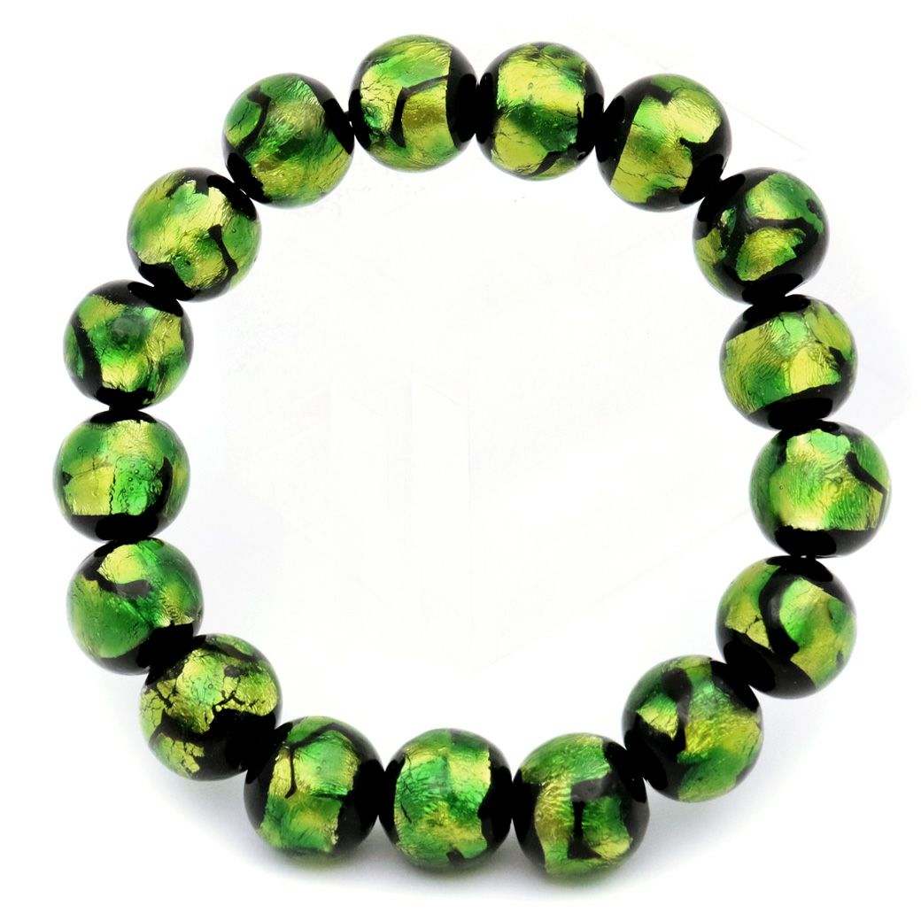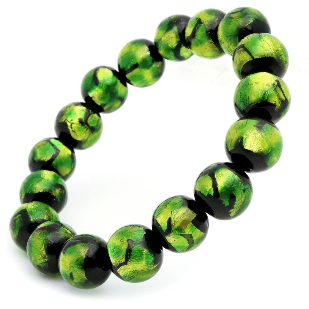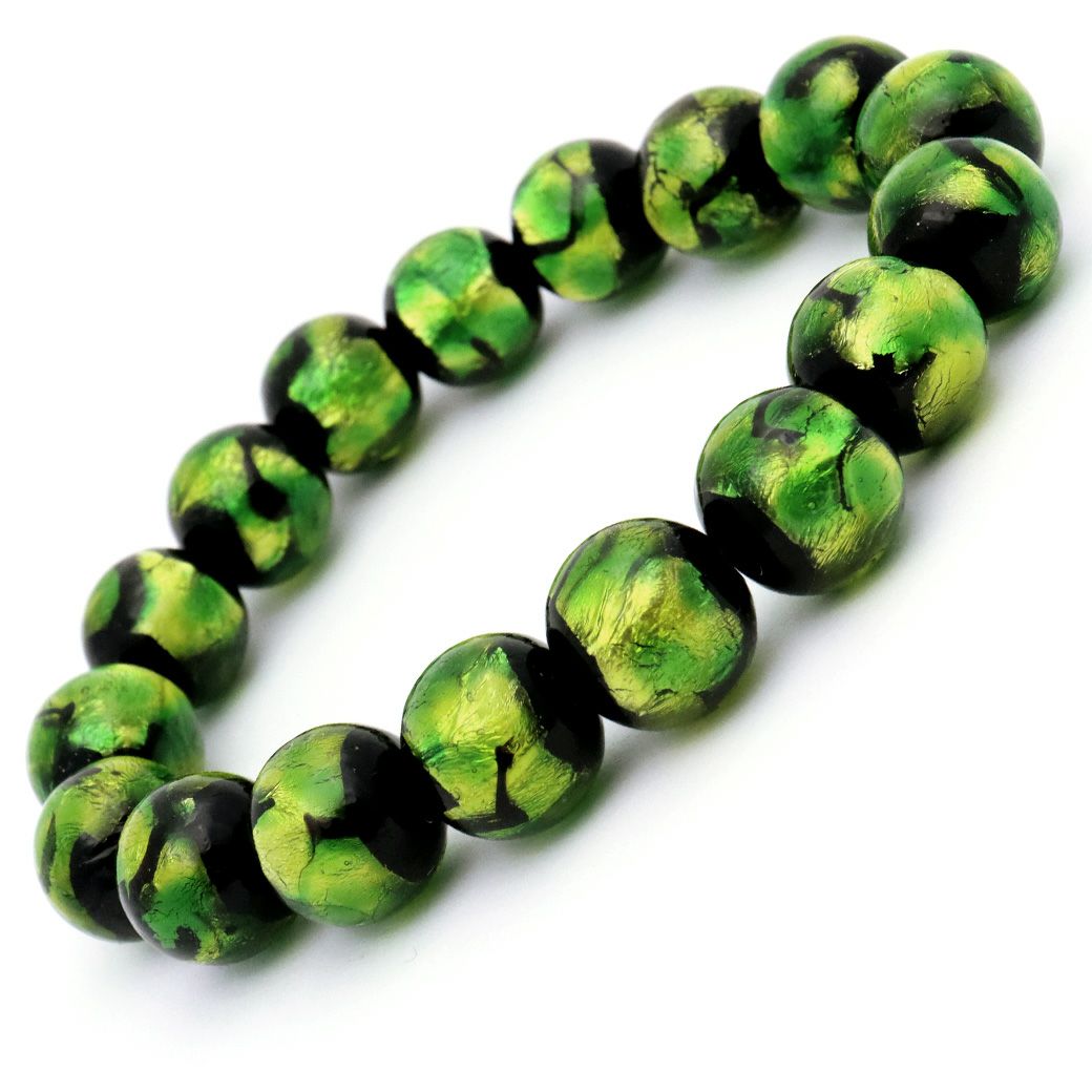 ホタルガラス ブレスレット ライトグリーン 緑色 12mm とんぼ玉 沖縄 お土産 アクセサリー 琉球