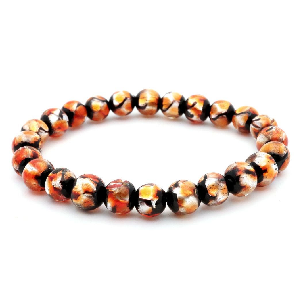ホタルガラス ブレスレット オレンジ 橙色 8mm とんぼ玉 沖縄 お土産 アクセサリー 琉球