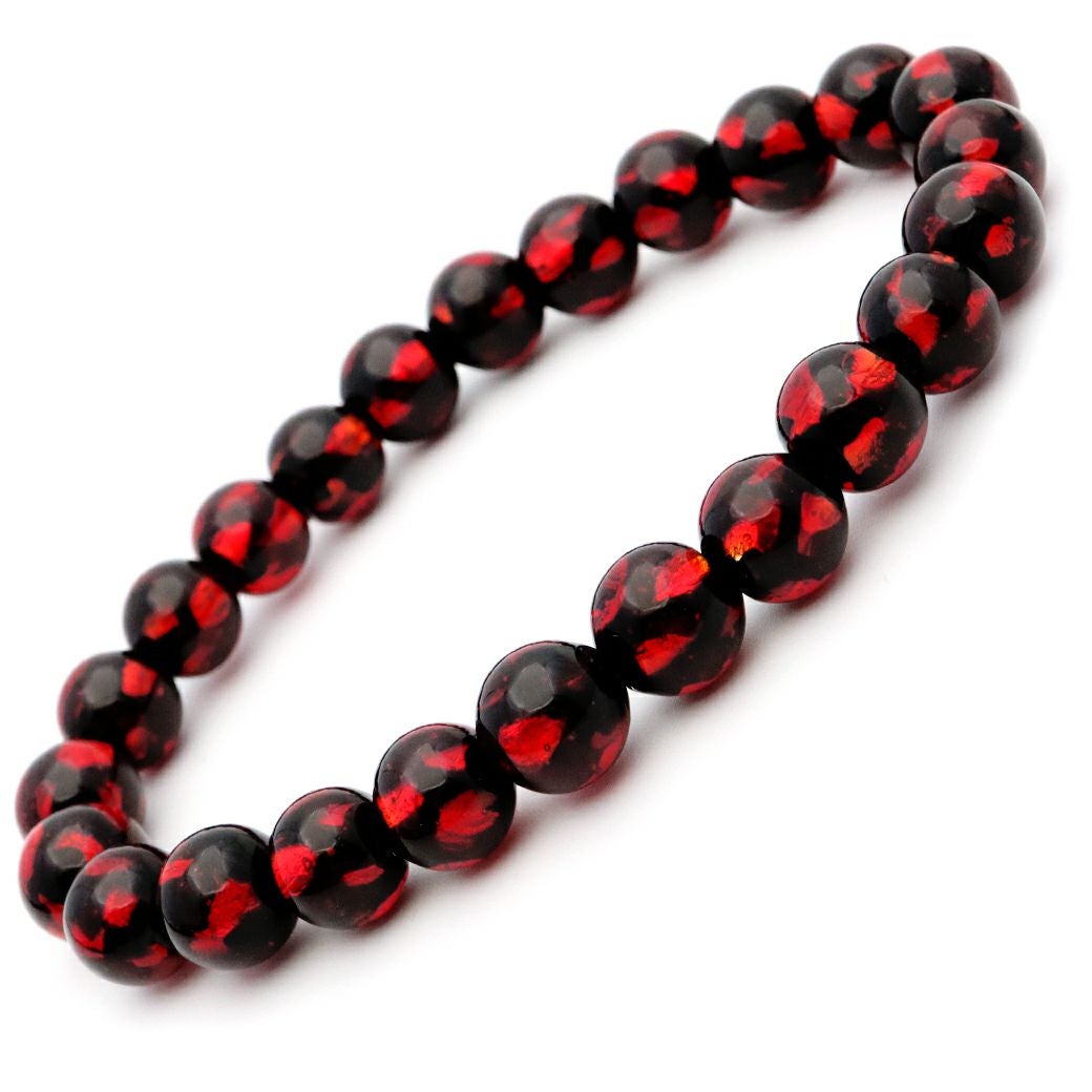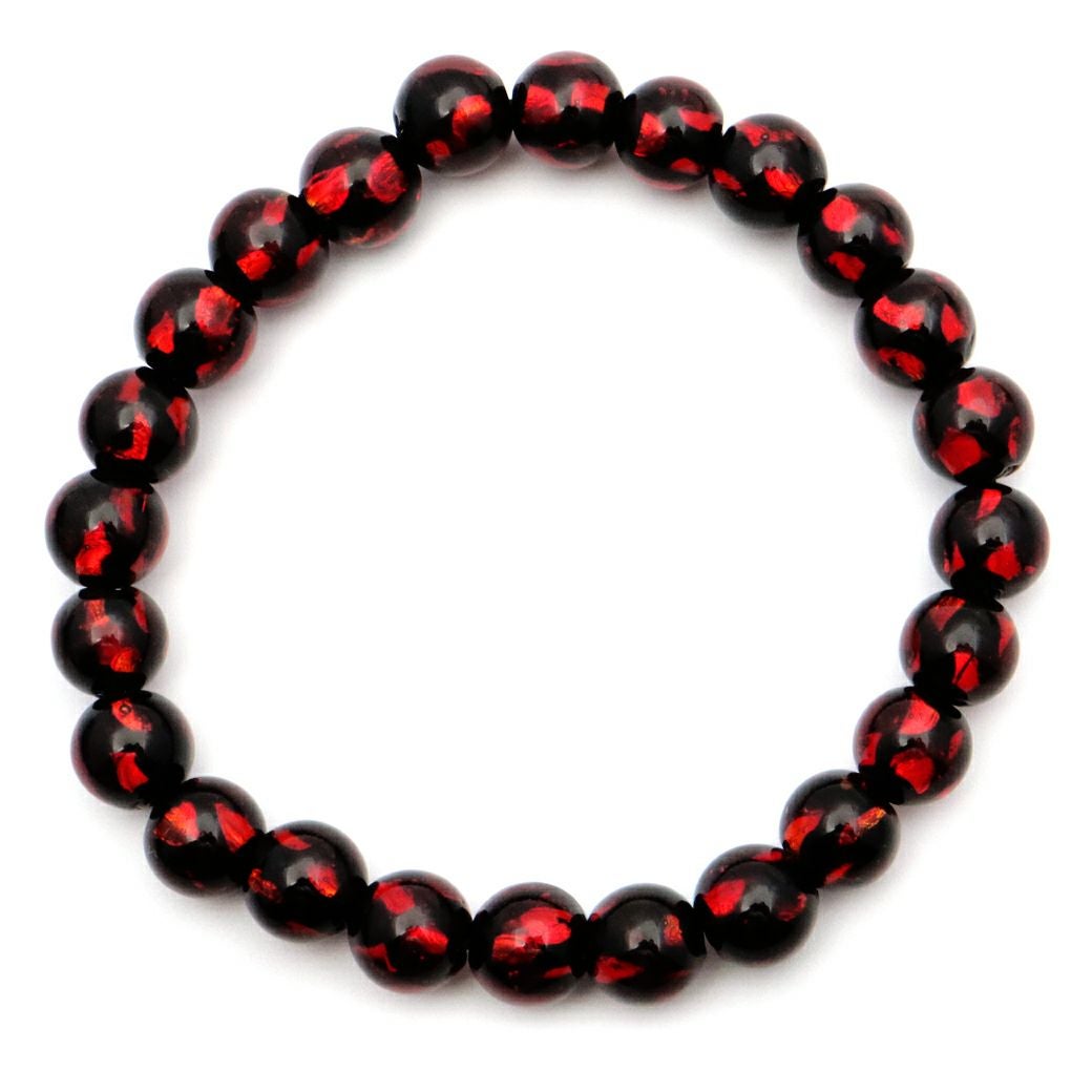 ホタルガラス レッド 赤色 Red ブレスレット 8mm とんぼ玉 沖縄 お土産